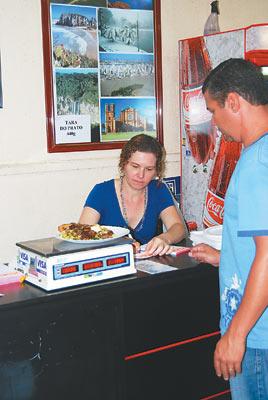 在正規的巴西飯店吃頓飯,至少要花幾十美元。即使是工作餐,一般也要20美元。相比之下,記者更喜歡去“公斤飯”餐館。“公斤飯”很有巴西特色,是按重量計費的自助餐。餐館大多裝潢簡單,沒有菜譜。靠墻一溜長桌上擺著各式飯菜,時鮮蔬菜、煎牛排、煮魚片、巴西特色煮豆飯、意大利面條以及水果甜點,一應俱全。顧客手持菜盤,將挑好的飯菜拿到電子秤上稱一下,然后按重量付款即可。