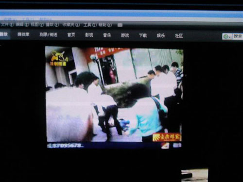 當(dāng)顧客在此要求兌現(xiàn)獎(jiǎng)品時(shí),商廈的保安當(dāng)場(chǎng)打傷3名女顧客,記者采訪(fǎng)時(shí)保安更是當(dāng)著記者的面毆打顧客,并集合十幾名保安當(dāng)街追打顧客,場(chǎng)面令人發(fā)指。一男一女兩名顧客受傷被送醫(yī)院搶救。(據(jù)河南電視臺(tái)法制頻道視頻整理)