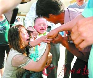 5月9日下午4時許,劉國琴緊緊抱著孩子,聲淚俱下。然而,9歲的小軍卻極力掙脫,哭著撲向養(yǎng)母的懷抱……“孩子乖,不哭,不哭。”養(yǎng)母安慰說,“這是你的親生媽媽。”