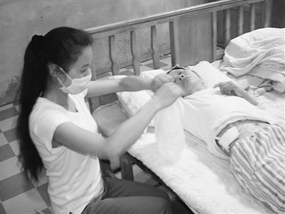 張錦現在每天都會為母親做三次“水透”。為了讓置放在母親體內的輸液管不被細菌感染,她就將家里的窗戶緊閉,以防灰塵進入。