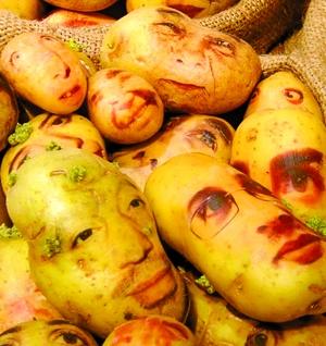 黎巴嫩藝術(shù)家Ginou Choueiri在個人博客上推出土豆肖像藝術(shù),利用土豆外皮的天然紋理、顏色繪出各式人等的面部表情。