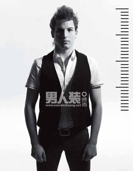 丹陽的發型首先很沒有型,而且偏長,于是造型師賣了把子力氣,幫他打理了一個干凈、利索的短發,顯得臉形瘦長不少,白色襯衫+黑色馬甲來自NELL BARRET,較之原先普普通通的Polo針織上衣,的確年輕了不少,視覺上也變得修長了。年輕化是丹陽必修的功課之一,短袖襯衫和時尚馬甲將他打造出潮人的氣息,而他本來的穿衣習慣則顯得太成熟、保守了。