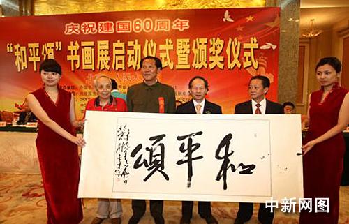 中新網6月22日電 “和平頌”書畫展啟動儀式暨頒獎儀式昨日在北京人民大會堂隆重舉行,全國僑聯副主席、全國婦聯副主席林麗韞、原全國工商聯主席王治國等領導,齊耕夫等書畫大家,首都文化界、新聞界眾多知名人士以及書畫作者出席。