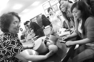 產科專家蓋教授(左)為“產科高級生命支持教程”培訓班講課 記者 姚波 攝