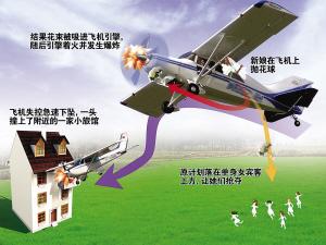 新人宣誓儀式結束后,早早坐在飛機上手捧一束鮮花的新娘伊西多羅彭西爾里開始高空拋花,就在花束飛出飛機的那一刻,恐怖一幕發生了:飛機引擎轉動產生的巨大吸力瞬間就吞掉了這束花,隨后引擎著火并發生爆炸,最后墜毀在附近一家50人居住的旅館上,幸運的是旅館里的人都沒有受傷。