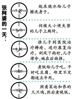22年前,一場不幸突然降臨在年輕的邵進身上。1986年的某天上午,他像往常一樣乘坐升降機到遠離地面的石膏礦深部,突然發生塌方,他身體被掉落的石塊壓住,下半身終身癱瘓。從此照顧邵進的重擔落在他母親張社妹的身上。