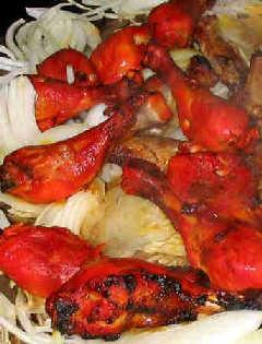 抵達(dá)加德滿(mǎn)都的第一晚我們四個(gè)人傻傻的不知道要吃什么,在路上晃來(lái)晃去,后來(lái)不知怎么的就去了Third Eye Restaurant吃印度菜,侍者建議我們點(diǎn)印度哈辣雞(Tandoorie Chicken),另外又點(diǎn)了印度烤餅(Naan)及一種紅咖哩(curry)叫做Chicken Tikka Masala,這一吃之下驚為天人,印度菜真不愧是世界美食啊!難以忘情的我們?cè)跉w國(guó)前一晚又再度光臨,因?yàn)檠吹慕Y(jié)果大家所剩無(wú)幾,于是帶著計(jì)算器,硬是擠出身上的最后一分錢(qián),一定要再吃一只哈辣雞全雞(375 Rs),才甘心回家。