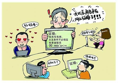 短短時間,他那帖子的點(diǎn)擊率超過了5000,不下200人要求加他QQ,其中居然還有十來個大老爺們。更讓他郁悶的是,不少女孩批評他發(fā)帖征婚太輕率,甚至懷疑他是騙子,或者動機(jī)不純。