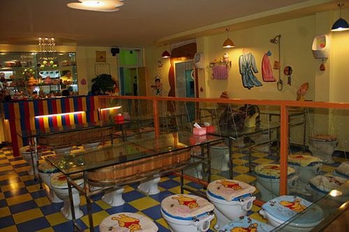 中新網11月2日電 在北京地安門外大街上,有一家衛浴主題的餐廳,叫便便滿屋飯堂,看它的名字就知道,它絕對是一家很“特殊”的餐廳。便便滿屋飯堂是北京首家用衛浴為主題的餐廳。