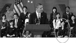 不久前,奧巴馬剛剛結束訪華,此行不僅讓奧巴馬成為各大媒體關注的焦點,同時也使一位神秘女子成為網(wǎng)絡紅人。11月16日在上海科技館會場,出現(xiàn)在奧巴馬身后的一名黑衣女子被攝入媒體鏡頭中,其亮麗的外形、獨特的氣質(zhì)吸引了眾多網(wǎng)民的眼球,網(wǎng)友迅速展開對女孩的“人肉搜索”。范冰冰親戚?楊瀾侄女?或者又是一場炒作?種種未經(jīng)確定的猜測充斥著各大論壇,也為黑衣女孩的身份蒙上了一層神秘的面紗。