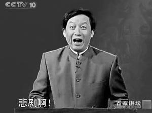 易中天在一期《百家講壇》中說了一句“悲劇啊”,這張截圖也是“悲劇”一詞迅速流行的重要原因。
