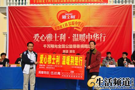 省扶貧辦副主任張杰在儀式上指出:湖北省在黨的十七大精神的指引下,在全社會大力倡導(dǎo)團(tuán)結(jié)互助、扶貧濟(jì)困、奉獻(xiàn)愛心的良好風(fēng)尚,推動全省慈善事業(yè)健康發(fā)展。集革命老區(qū)、山區(qū)、庫區(qū)、多災(zāi)區(qū)的黃岡,11個縣市就有5個國家級貧困縣,730萬人口中每年因災(zāi)因病返貧約50萬人,有50多萬殘疾人,有15萬多因無勞動能力、無瞻養(yǎng)人生活十分困難的老年人,有近30萬大學(xué)、中學(xué)、小學(xué)貧困生。因此,我們感謝像雅士利這樣的企業(yè)和社會團(tuán)體,與我們一起關(guān)注弱勢群體、挖掘慈善資源、實施慈善救助、為弱者送愛,為困者送暖。