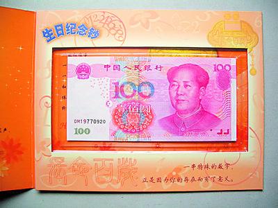 記者在淘寶網上搜索“生日鈔”關鍵字,出現了近300個搜索結果,其中浙江、上海、北京、廣州的賣家都有。記者打開一家網店,展示這些不同面值的紙幣,紙幣編號清晰地拍攝出來,都是可以與年月日相對應的號碼。該網店還特別打出廣告,“一億張紙幣中,號碼與你生日相同的只有一張,概率比中500萬元彩票還要難10倍。”