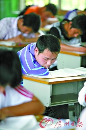 就讀于廣州市越秀外國(guó)語(yǔ)學(xué)校的高三男生勇仔(化名)的趕考路異于他人:媽媽推著輪椅,將他送到廣州市第三中學(xué)考場(chǎng),接下來(lái)就由監(jiān)考老師接手。勇仔的試室在4樓,兩個(gè)壯年男老師一左一右抬起輪椅,將他護(hù)送到座位上。由于從出世以來(lái)就身患“成骨不全”,勇仔無(wú)法靠雙腿行走。從小學(xué)5年級(jí)至今,他能有機(jī)會(huì)參加高考,可以說(shuō)全賴媽媽龔女士的懷抱。