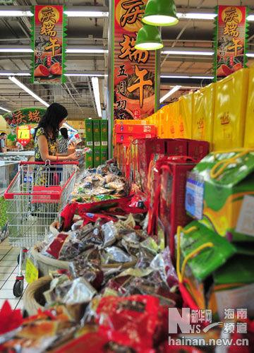 6月9日,海南?谑忻裾谔暨x粽子。