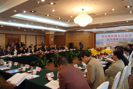 2009“百名海外博士江蘇行”第三站走進了新亞歐大陸橋東橋頭堡——連云港市。連云港市委、市政府舉行了隆重的推介會,誠邀海外博士來港創新創業。百名海外博士與連云港市各政府部門、企事業單位代表進行了近距離地對接洽談。市委常委、常務副市長張同生、市委組織部副部長、人事局局長馬炳軍等領導出席了此次會議。