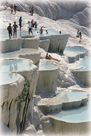 格萊梅以南三十公里處的Derinkuyu(朝Nigde方向)還有一處最著名的地下城市。七、八世紀(jì)時(shí)當(dāng)?shù)氐幕酵骄幼≡谶@里,把它當(dāng)作避難所來(lái)躲避入侵的阿拉伯軍隊(duì)。到目前為止,人們?cè)诟袢R梅地區(qū)已經(jīng)發(fā)現(xiàn)了三十六座大大小小的地下城市,最多的在地下有八層走廊和房間。每座地下城市都有廚房、酒窖和橄欖壓榨機(jī)、飯廳、馬廄、臥室、儲(chǔ)藏室、深井、通氣口,甚至還有教堂,可謂曠世奇作。