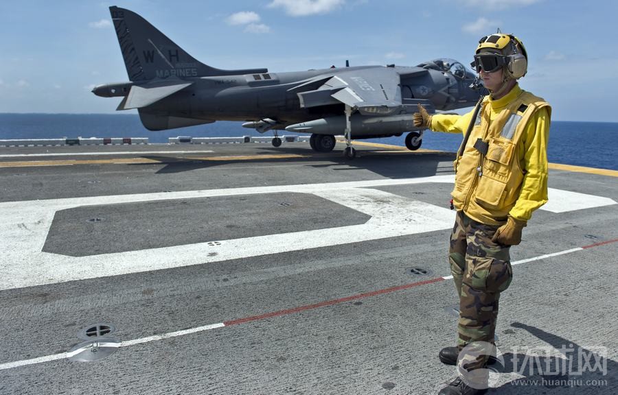 在此次美菲聯合登陸演習中,一架AV-8B鷂式戰斗機從好人理查德號兩棲攻擊艦上起飛。