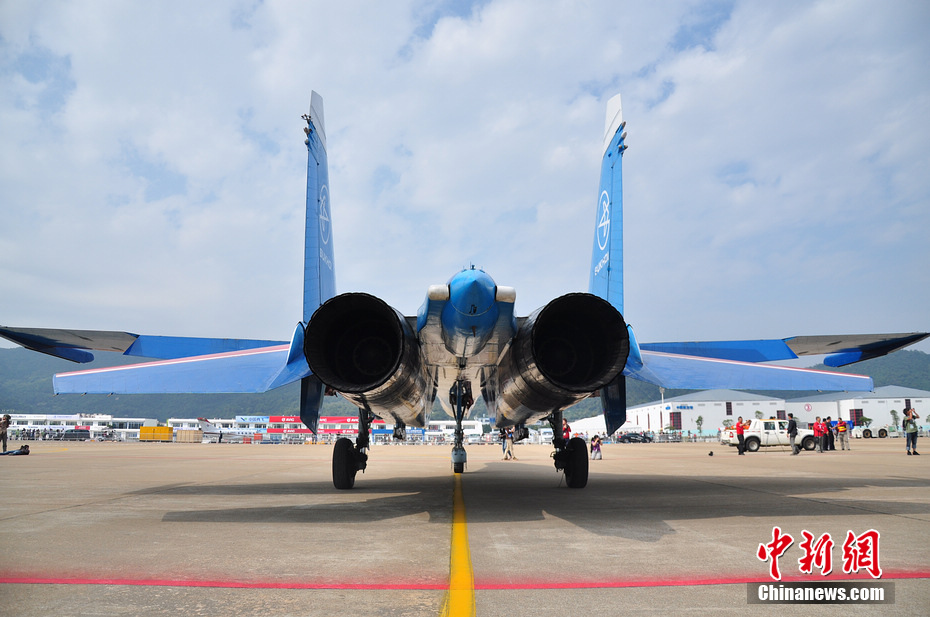 俄羅斯勇士飛行表演隊蘇27尾部實拍。陳海峰 攝