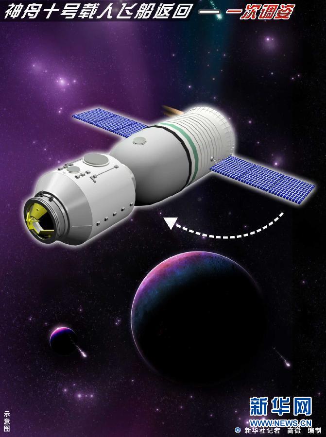 神舟十號(hào)載人飛船返回——調(diào)姿 新華社記者 高微 編制