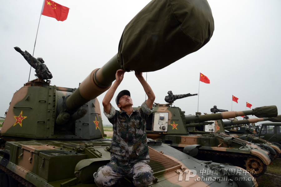 暴雨來臨前期戰士們正在為裝備穿戴炮衣