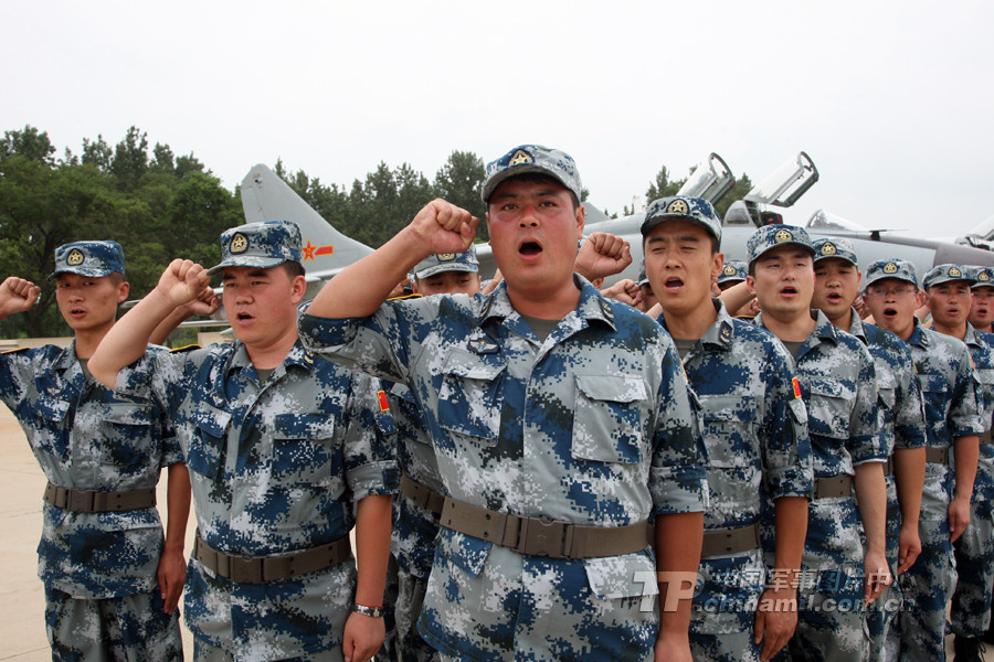 空軍戰斗群21名地轉人員出征前宣誓。 曹占禮 攝