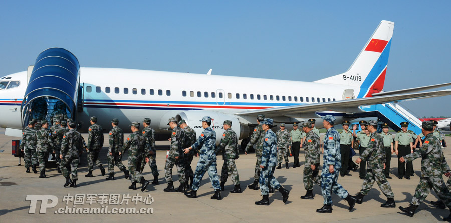 中方導演部及戰役指揮部人員于7月31日乘專機出境,前往俄羅斯車里雅賓斯克州的切巴爾庫爾訓練基地,參加“和平使命-2013”中俄聯合反恐軍事演習。中俄兩軍于7月27日至8月15日舉行的聯演不針對第三方,目的是深化兩軍在訓練領域的合作,提高軍事行動協調能力,在維護地區安全穩定中發揮積極作用。