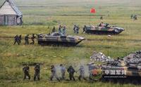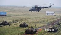 8月8日中午,在俄羅斯車?yán)镅刨e斯克的切巴爾庫爾訓(xùn)練場的實(shí)兵演練場地,“和平使命-2013”中俄聯(lián)合反恐軍事演習(xí)首次合練在風(fēng)雨中按計(jì)劃進(jìn)行!