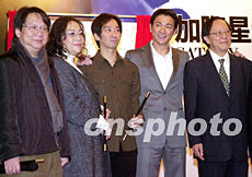 加際娛樂有限公司主辦的加際星藝高校15日在港舉行開幕儀式,將培育新一代具演藝潛能新人的學(xué)校。圖為該校榮譽校長鍾景輝(右)、訓(xùn)導(dǎo)主任劉德華、司儀系主任張達明(中)、戲劇系主任杜國威(左)及歌唱系主任曾路得(左二)的合影。