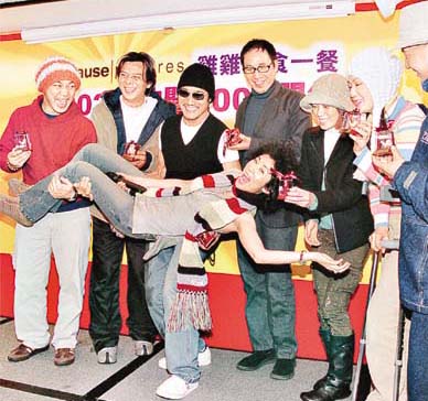 梁家輝與吳君如及其他演員陳奕迅、黃日華、張堅庭、杜汶澤、田蕊妮等同坐一席時,談笑風生,連上臺也要搞搞氣氛,叫眾演員來個“眾星拱如”將君如捧起。吳君如為慶祝《金雞》上映兩周,票房上佳,前晚不但設慶功宴慰勞大家,還自掏腰包買了八粒小金雞答謝一班有份在片中客串演出的“嫖客”好友。