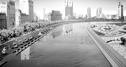 海河左岸:北開渡口至金剛橋段長1300米,堤岸線向后退18米;