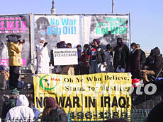 數萬美國人十八日中午聚集華盛頓的國會山前,舉行聲勢浩大的反戰示威游行,反對對伊拉克動武。作者:余東暉