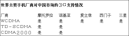 此外,中國市場巨大,潛力更是驚人,目前中國是GSM第一大國,每年凈增6000萬用戶。就像拋開了中國的12億人口談世界人口狀況一樣,憑借除中國以外的手機市場現狀來預測未來3G趨勢顯然是不權威的。決定未來3G命運的主戰場可能就是中國。