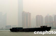 1月20日,今年首場大霧緊裹蘇浙滬等省市。上海郊區的能見度普遍不足100米。圖為黃浦江上一片朦朧。李江松 攝