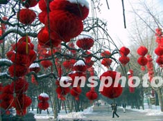 中國農歷羊年將至,北京地壇早早掛起了大紅燈籠,為冬季的北京平添了濃濃的節日氣氛。作者:杜洋
