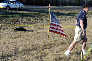 圖:美國人在飛機失事地區插美國國旗表達哀悼