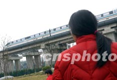春節期間,上海市民紛紛來到浦東乘坐開通僅一個月的磁懸浮列車,體驗時速四百余公里的飛馳感覺,而未買到票的人只能遺憾的在一旁觀望。作者:張宇