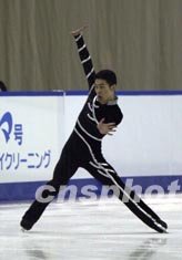 第五屆亞冬會花樣滑冰二月三日決出男子單人滑金牌,中國選手李成江不敵東道主日本選手,獲得銀牌。圖為李成江在比賽中。作者:陶光雄