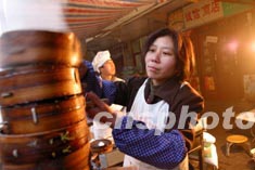 來自河南的黃平心夫婦三年前下崗,如今夫婦倆在西安古城根下開辦的包子鋪生意紅火。中國政府規定,下崗職工再就業可獲得多項優惠政策支持。作者:崔文斌