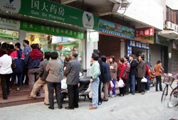 近來(lái),廣東出現(xiàn)非典型肺炎病例的消息傳出后,廣東的廣州、深圳、珠海、東莞等地市民都自發(fā)積極采取預(yù)防措施,各地市民爭(zhēng)相購(gòu)買(mǎi)白醋、板藍(lán)根、羅紅霉素、抗病毒口服液等藥品。廣州市內(nèi)的各大小藥店生意分外地好,部分藥物已快脫銷。據(jù)廣州市藥材公司業(yè)務(wù)總部的消息,該公司板藍(lán)根沖劑、抗病毒口服液、抗病毒沖劑三種藥物的所有存貨已經(jīng)全部批出,而目前正聯(lián)系各地廠家加緊生產(chǎn),以最快速度投放市面。
