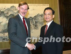 國務院副總理溫家寶,十七日在北京會見美國貿易代表佐利克。作者:滿會喬