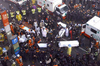 韓國地鐵縱火案:地鐵癱瘓 空氣里到處都彌漫著毒氣 (2003-02-18 13:55:40)