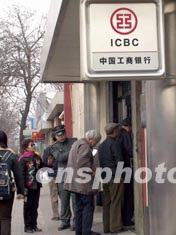 北京民眾二十日上午前往銀行營業部購買2003年記帳式(一期)國債。本期國債發行總額為三百五十億元人民幣,期限七年,票面年利率為百分之二點六六。作者:鄒憲
