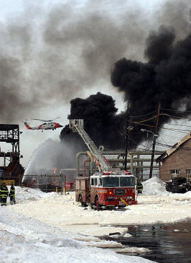 圖文詳訊:美國紐約州一家煉油廠因爆炸引發大火 (2003-02-22 00:30:40)