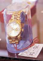 據(jù)說慕綏新當時定制這套球桿的價格高達二點五萬美元,而今天這套球桿的起拍價僅為一千零八十元人民幣。這套球桿起拍開始后,隨著競標人一次次加價,其價格就一路狂奔、節(jié)節(jié)攀升,現(xiàn)場氣氛極其熱烈。當一位大連商人喊出十萬零一千元的高價后,一位董姓商人當即喊出十二萬元的高價。這只十二高爾夫球桿最終以每桿一萬元的高價歸到了這位志在必得的董姓商人名下。據(jù)說這位行蹤神秘的董姓商人來自外地,高價買下這十二只球桿是要作為反腐敗教育的永久性紀念,他拍賣成功后便迅速離開現(xiàn)場,不肯接受記者采訪。當劉志堅敲響今天上午最后一聲悅耳有力的拍賣槌時,今天上午的拍賣會以一百九十六點五萬元的最終成交額“一錘定音”。這比拍賣師事先估計的成交額高出六十多萬,包括兩套住宅、一個車庫、兩個“五愛市場”檔口以及高爾夫球桿、進口跑步機等七個運動器械共計十二個標的順利拍賣成功。