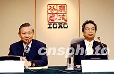 2月25日,香港廉政公署就回顧過去一年的工作成績及展望未來的工作重點舉行記者會。圖為廉政專員李少光和執行處首長李銘澤在會上介紹情況。洪少葵 攝