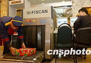 三月一日,在全國(guó)政協(xié)委員入住的北京友誼賓館,工作人員正在對(duì)進(jìn)入賓館的物品進(jìn)行安全檢查。作者:張煒