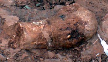 中新網(wǎng)3月2日電 曾經(jīng)出土過許多恐龍蛋化石、骨化石的浙江省天臺縣,最近邀請有“龍王”美譽的中國科學院古脊椎古人類研究所著名恐龍專家董枝明教授、中國地質(zhì)科學院資源所礦物巖石學家陳克樵教授首次對恐龍骨化石進行科學的搶救性挖掘。經(jīng)過近一周的工作,已發(fā)現(xiàn)了恐龍脊柱骨、肋骨、尾脊、小的甲片、前后肢等化石。