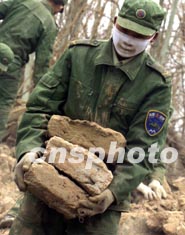 在新疆地震災區救災的解放軍官兵連日奮力清理災害現場,為災民搶救被埋壓的生活用品。作者:宋吉河