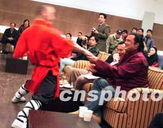 在日本學過十年氣道和劍道的好萊塢動作影星史蒂文·席格,六日在北京觀摩“中國武術”功夫,并與武術少年一試身手。據傳他將在中美合拍的電影《成吉思汗》中擔任主要角色,此次來中國是為他今后的影片物色演員。作者:王麗南